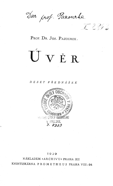 | Vydáno: | 1929. Nákladem "Archivu" Praha XII. V komisi knihkupectví Fr. Řivnáče v Praze. Knihtiskárna "Prometheus" Praha VIII-94.